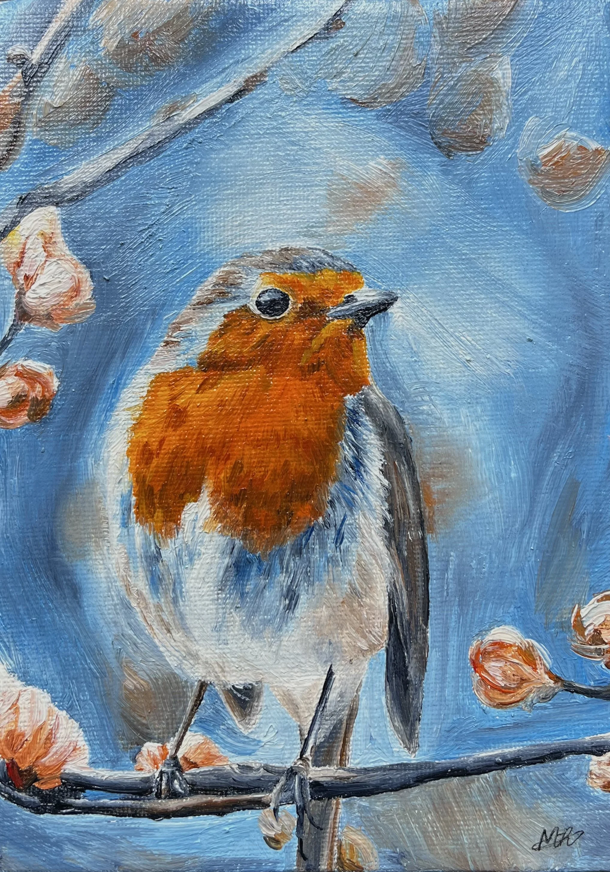 “Visiting Robin” Original Oil Painting